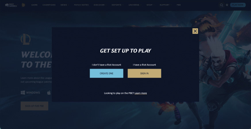 Sobald Sie die Anforderungen erfüllen, können Sie Ihre Berechtigung überprüfen und über das offizielle Anmeldeportal von Riot ein PBE-Konto erstellen.