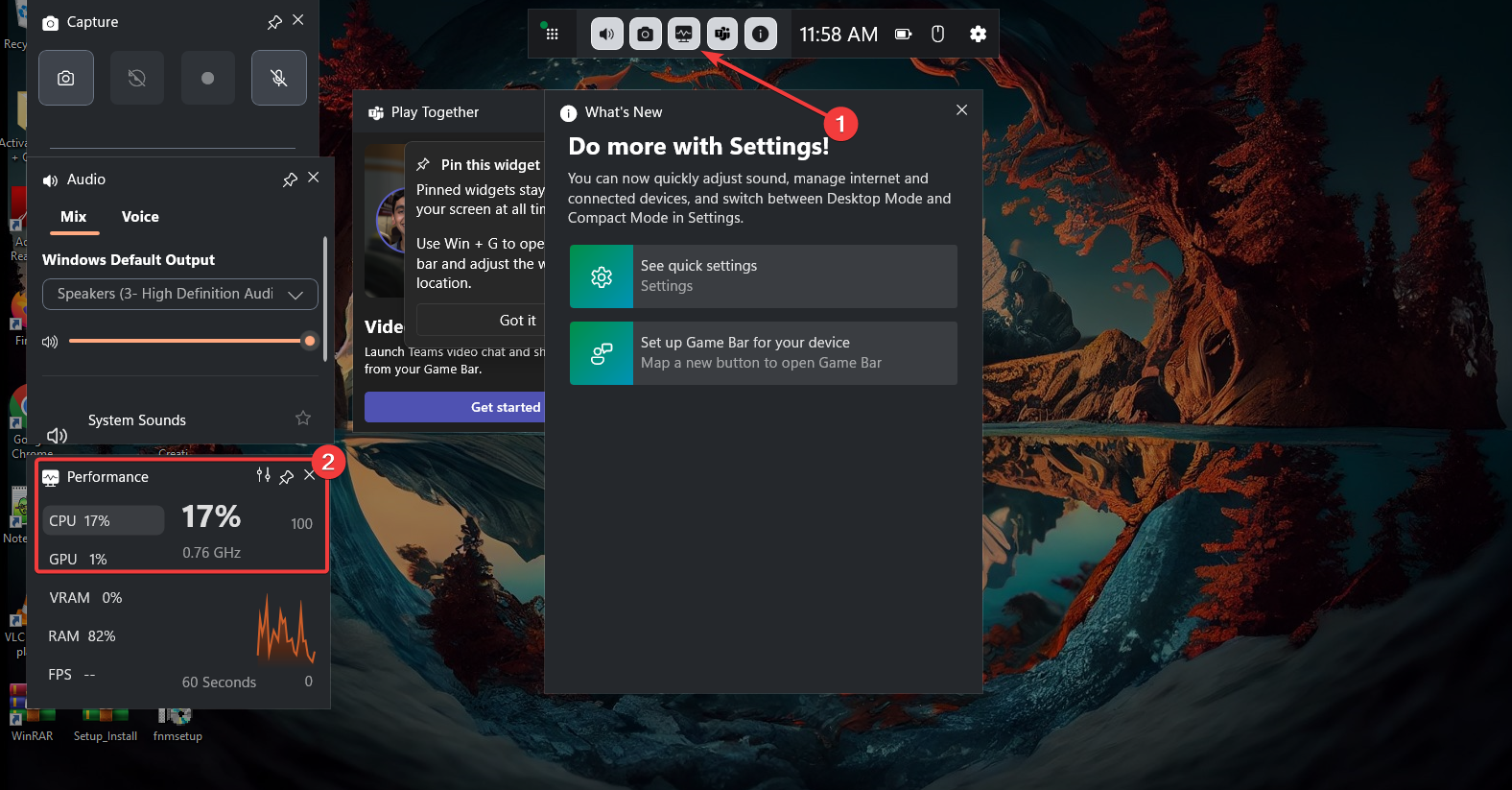 2) CPU-Auslastung mit der Windows 10 Game Bar anzeigen