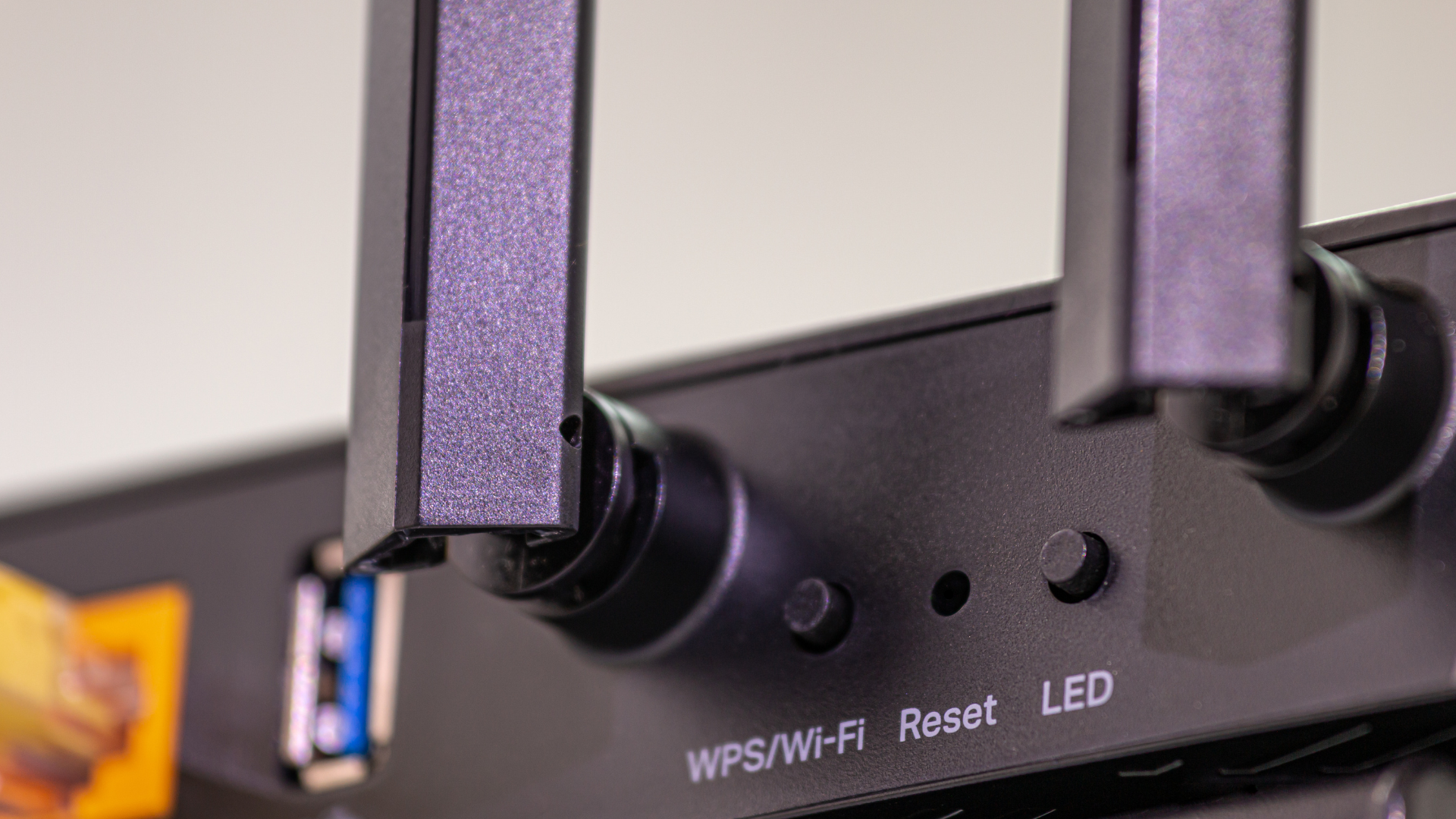 Bei den meisten Heimroutern befindet sich die WPS-Taste auf der Rückseite oder Oberseite in der Nähe der anderen physischen Tasten und Anschlüsse. Es kann mit WPS gekennzeichnet sein oder ein kleines Symbol mit zwei gebogenen Pfeilen oder ein Vorhängeschloss mit Funkwellen anzeigen.