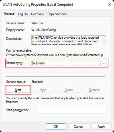 Run.Type services.msc und drücken Sie die Eingabetaste, um Windows-Dienste zu öffnen.Suchen Sie nach WLAN AutoConfig und doppelklicken Sie darauf. Wenn der Starttyp deaktiviert ist, stellen Sie Startup Geben Sie zu Automatisch ein und klicken Sie auf Start und dann auf OK.