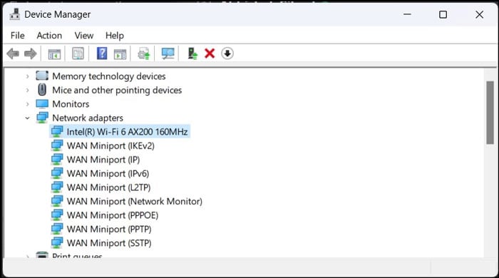 Sie können Wi-Fi auch über den Geräte-Manager (devmgmt.msc on Run) > Netzwerkadapter aktivieren.