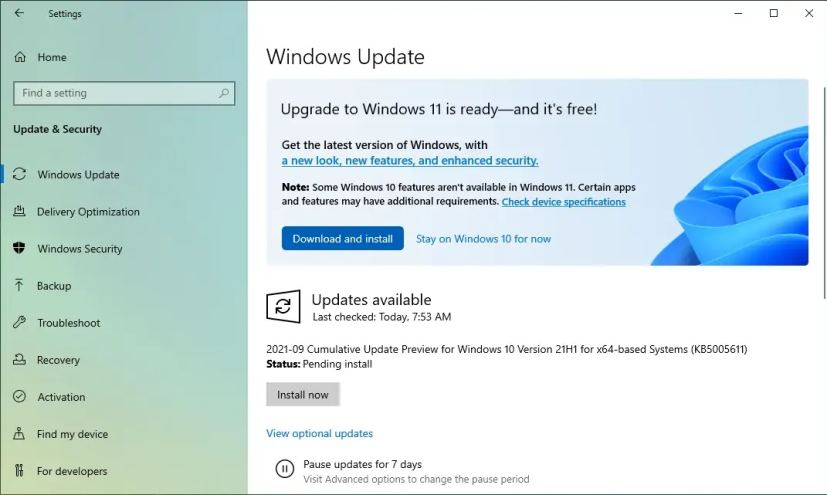 Um ein Upgrade von Windows 10 auf Windows 11 über Windows Update durchzuführen, führen Sie diese Schritte aus: