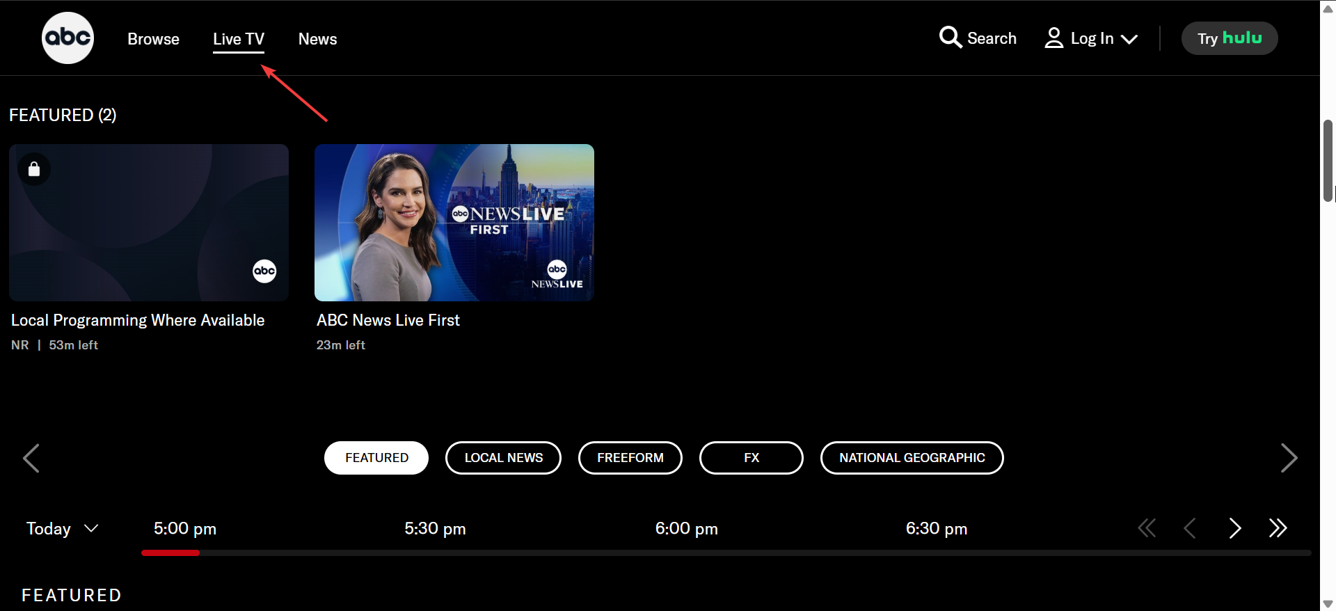 Οι υπηρεσίες ζωντανής τηλεόρασης συχνά περιλαμβάνουν ABC σε περιοχές των Η.Π.Α. όπου υποστηρίζουν τοπικές θυγατρικές. Πολλοί προσφέρουν δωρεάν δοκιμές που διαρκούν από πέντε έως επτά ημέρες. Οι χρήστες που θέλουν να μεταδώσουν αθλητικά γεγονότα, εκπομπές βραβείων ή πρεμιέρες σεζόν μπορούν να χρησιμοποιήσουν αυτές τις δοκιμές χωρίς κόστος πριν από την ακύρωση.