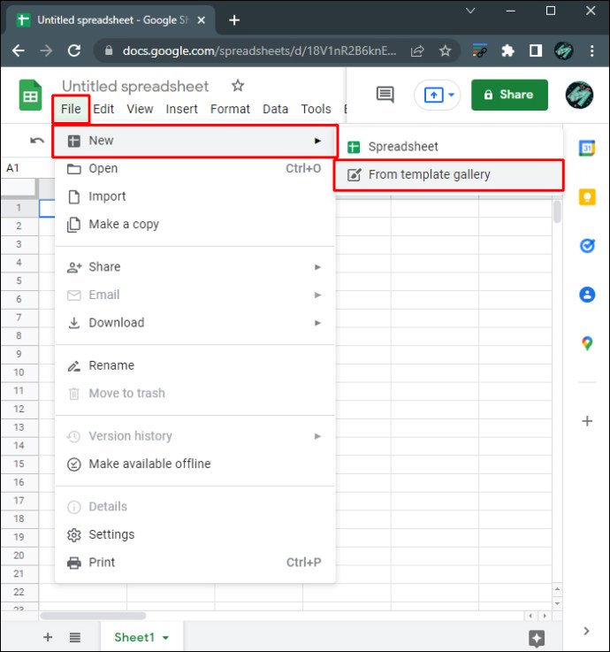 Χρήση προτύπουΑνοίξτε ένα νέο αρχείο στα Φύλλα Google ή πληκτρολογήστε”sheets.new”στο Google Chrome για αυτόματη δημιουργία ένα κενό φύλλο.