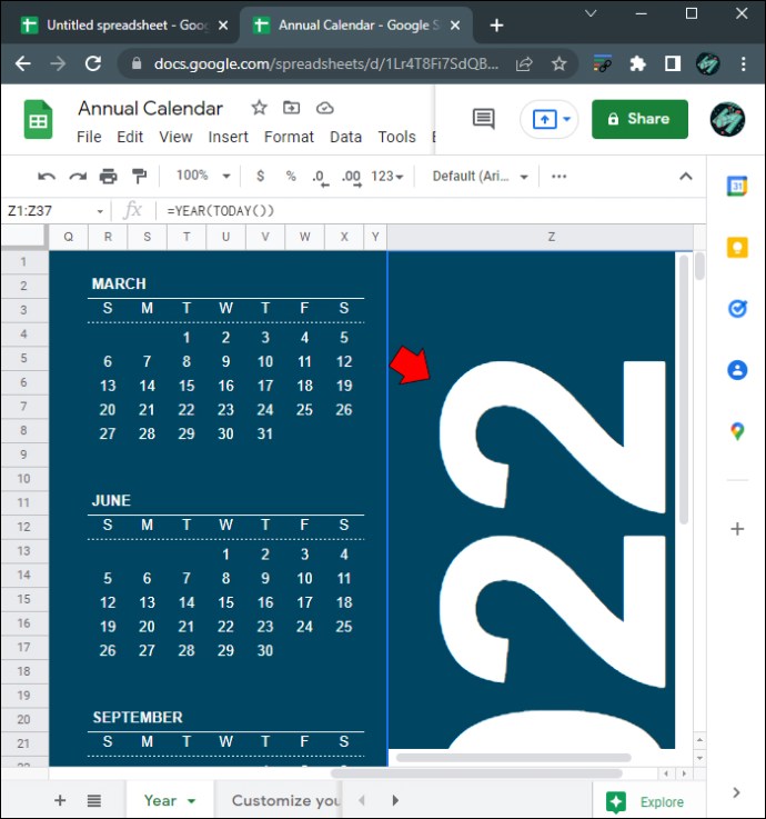 img width=”690″height=”737″src=”https://i0.wp.com/www.alphr.com/wp-content/uploads/2022/04/using-a-template-4.jpg; resize=690%2C737&ssl=1″>Για να αλλάξετε το ημερολογιακό έτος, βεβαιωθείτε ότι βρίσκεστε στο φύλλο”Έτος”και, στη συνέχεια, κάντε κλικ στο μεγάλο κείμενο του έτους στα δεξιά.Ο τύπος θα εμφανίσει”=YEAR(TODAY() )”χωρίς τα εξωτερικά εισαγωγικά, που σημαίνει ότι το τρέχον ημερολόγιο θα δείχνει το τρέχον έτος. Εάν θέλετε να το αλλάξετε σε συγκεκριμένο έτος, πληκτρολογήστε μια ημερομηνία μέσα στα εισαγωγικά μέσα στις παρενθέσεις. Για παράδειγμα, εάν θέλετε να αλλάξετε την ημερομηνία σε 2025, ο τύπος θα πρέπει να δείχνει”=YEAR(“1/01/2025”)”χωρίς τα εξωτερικά εισαγωγικά. Θυμηθείτε να προσθέσετε εισαγωγικά γύρω από την ημερομηνία, διαφορετικά θα αντιμετωπίσετε σφάλμα #NUM.