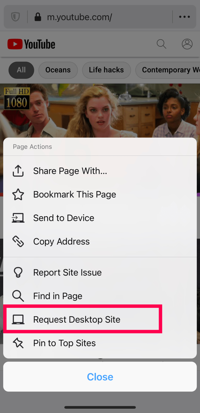 Vea el sitio de escritorio de YouTube desde su iPhone