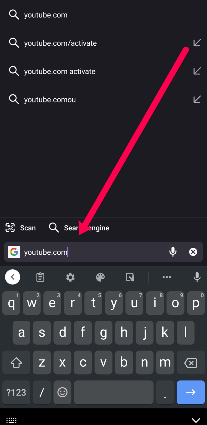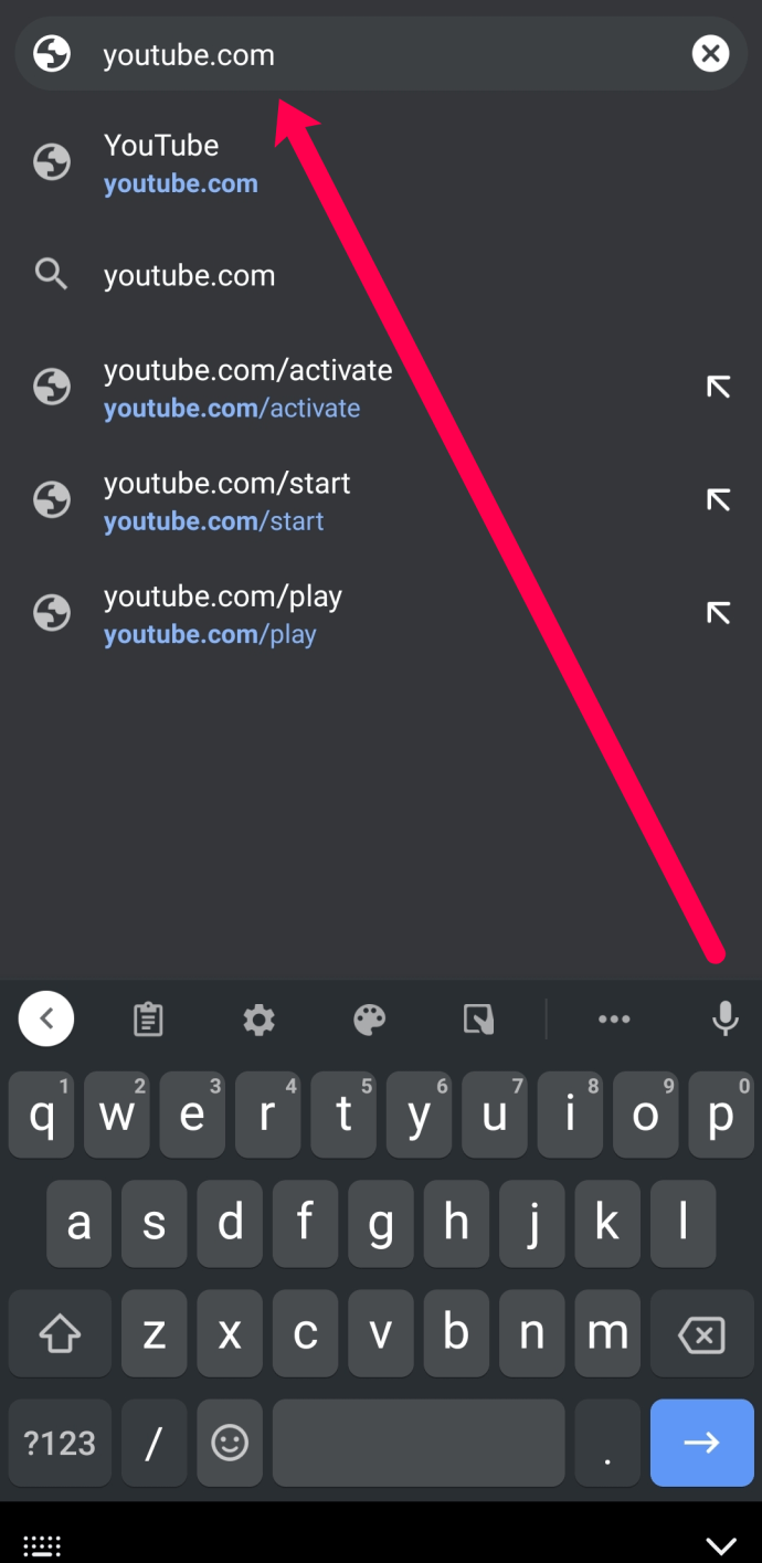 Abre “Firefox”, escribe “youtube.com” exactamente como se muestra pero sin comillas en la barra de direcciones, luego toca “Entrar”.