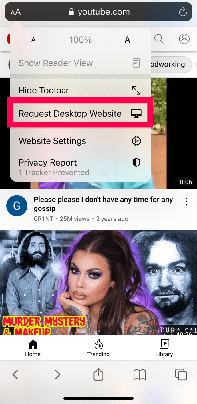 Vea el sitio de escritorio de YouTube desde su iPhone