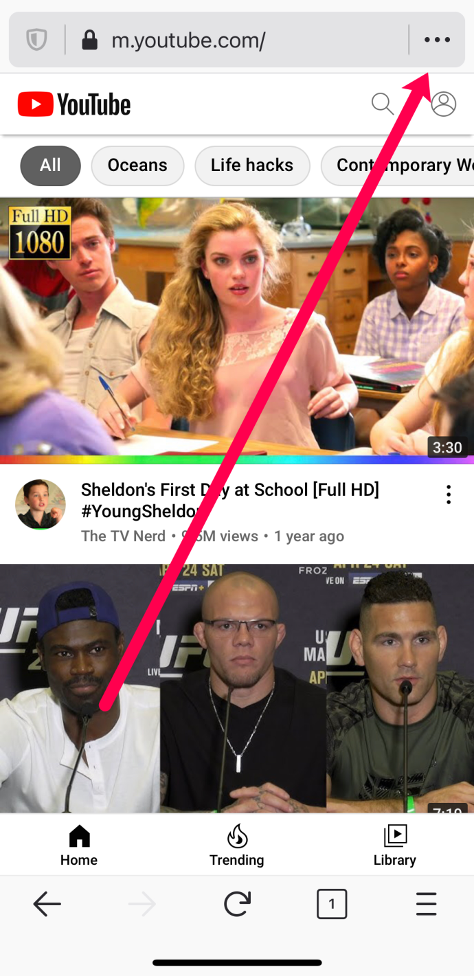 Firefox es un poco más sencillo de navegar. Si necesita acceder a la versión de escritorio de YouTube, haga lo siguiente: