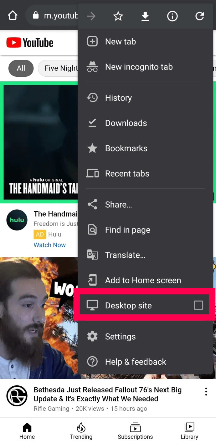 Vea el sitio de escritorio de YouTube desde su teléfono Android