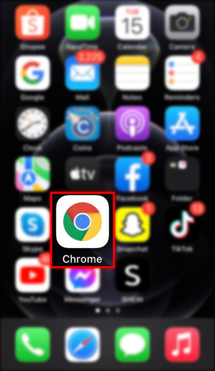 Abra el navegador “Chrome” del iPhone (no la aplicación de Google), luego escriba” youtube.com“exactamente como se muestra pero sin comillas en la “barra de direcciones”. Toca “Ir” para visitar la página web.
