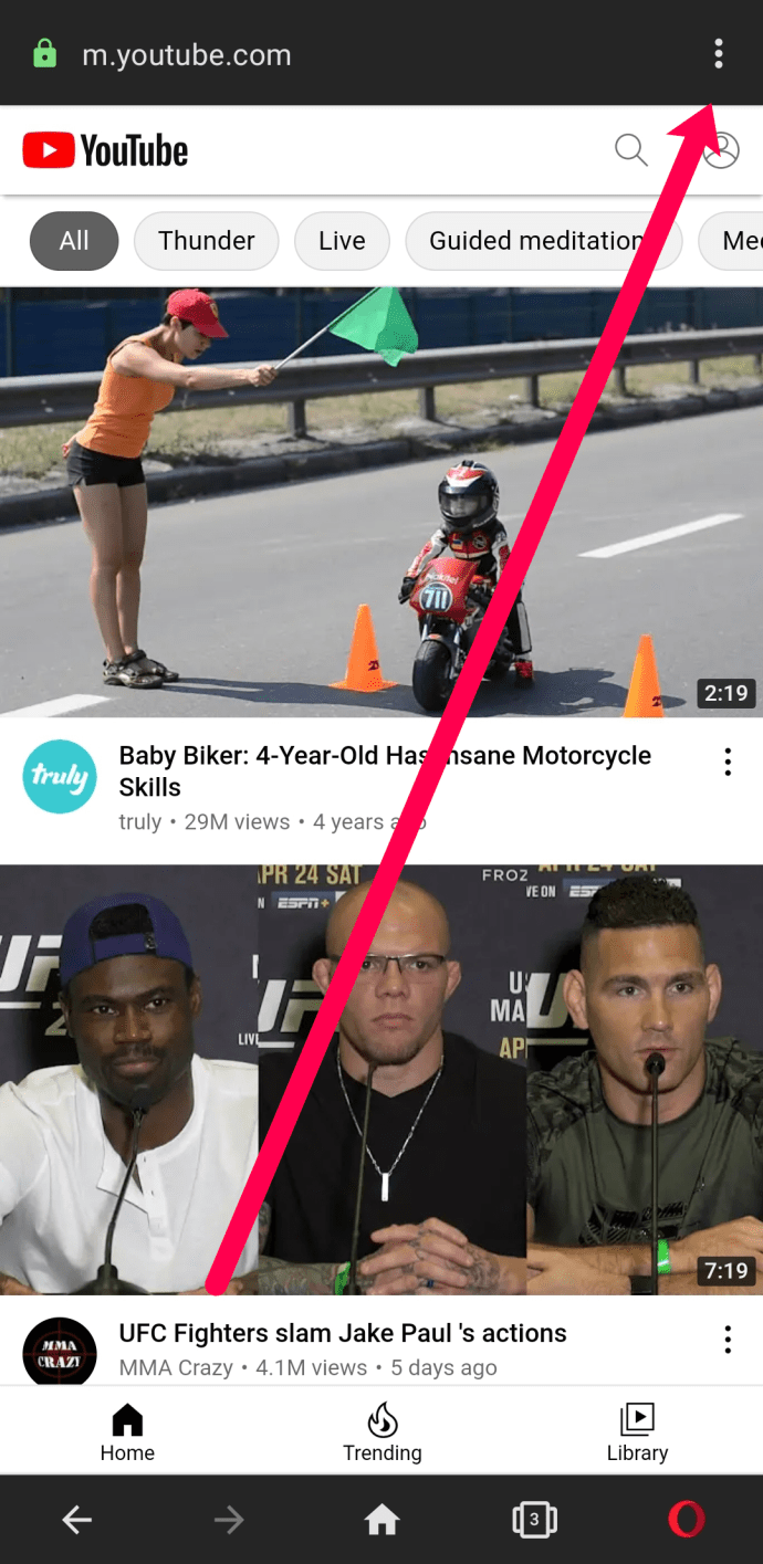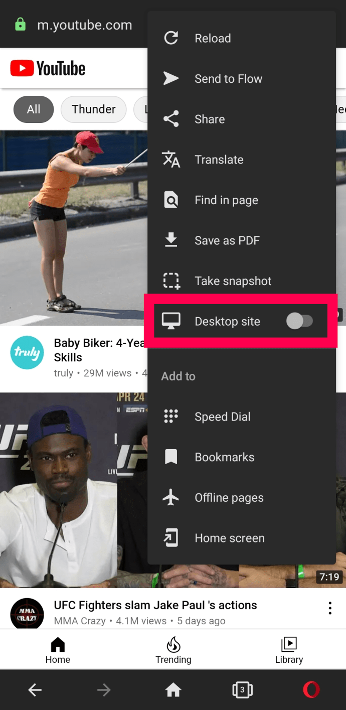 Otro navegador popular es Opera. Afortunadamente, puedes ver la versión de escritorio de YouTube siguiendo estos pasos: