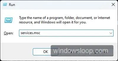 Paso 2: Escriba”services.msc“en el cuadro Ejecutar y haga clic/toque el botón”Aceptar“.