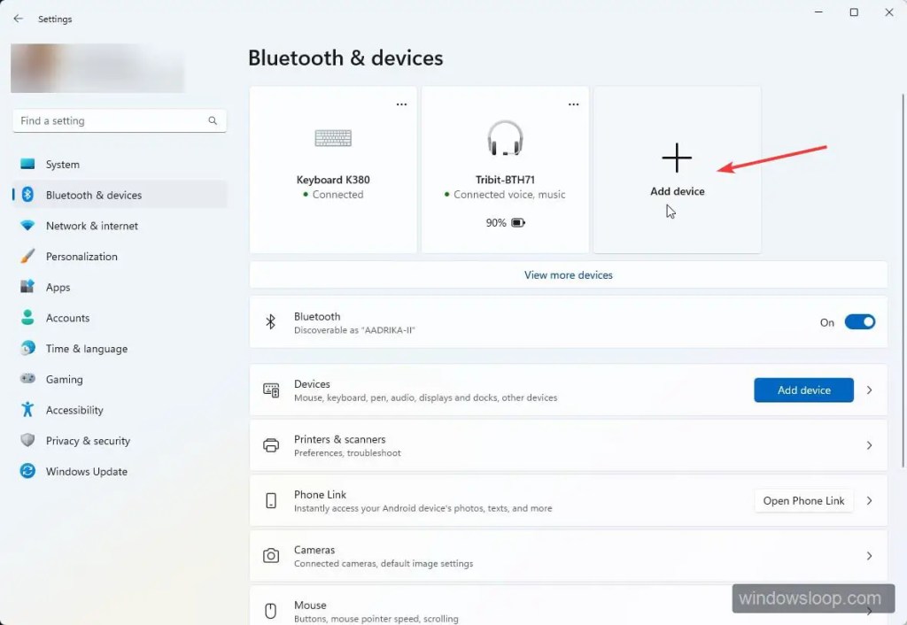 Paso 6: Vaya a la página Configuración > Bluetooth y dispositivos y haga clic en la opción”Agregar dispositivo“.