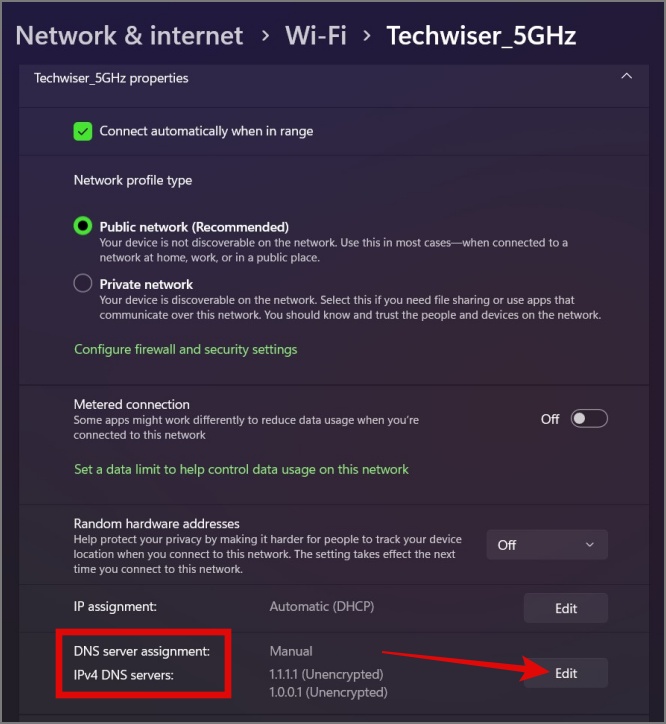 3. Pulse el botón Editar junto a la asignación del servidor DNS.