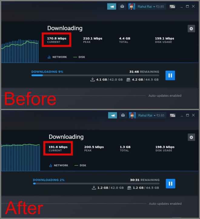 Si el método anterior no le ayudó, intente cambiar a ethernet y vea si el enrutador al que está conectado es la causa principal del problema. Después de todo, es un hecho bien conocido que acceder a Internet a través de Wi-Fi generalmente conduce a una reducción de la velocidad. Si observa un aumento en su velocidad de descarga en Steam después de cambiar a una conexión Ethernet, ahora sabe dónde radica el problema.