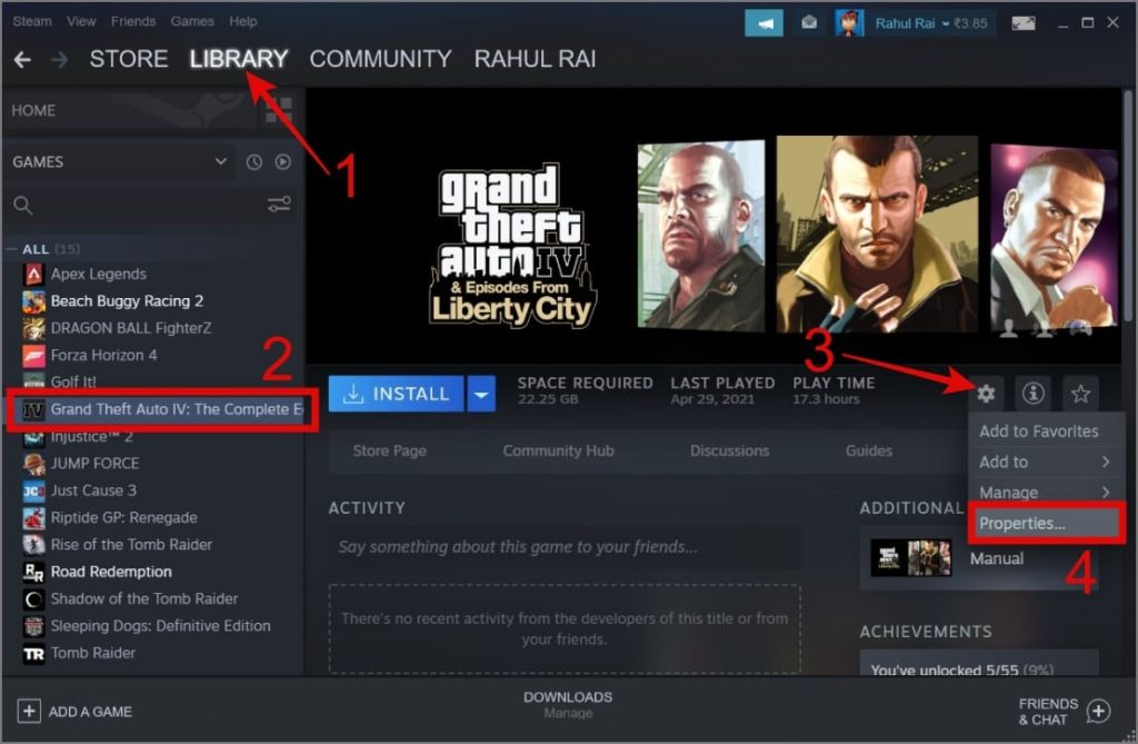 1. Navegue a la página Biblioteca del juego y seleccione el Juego.