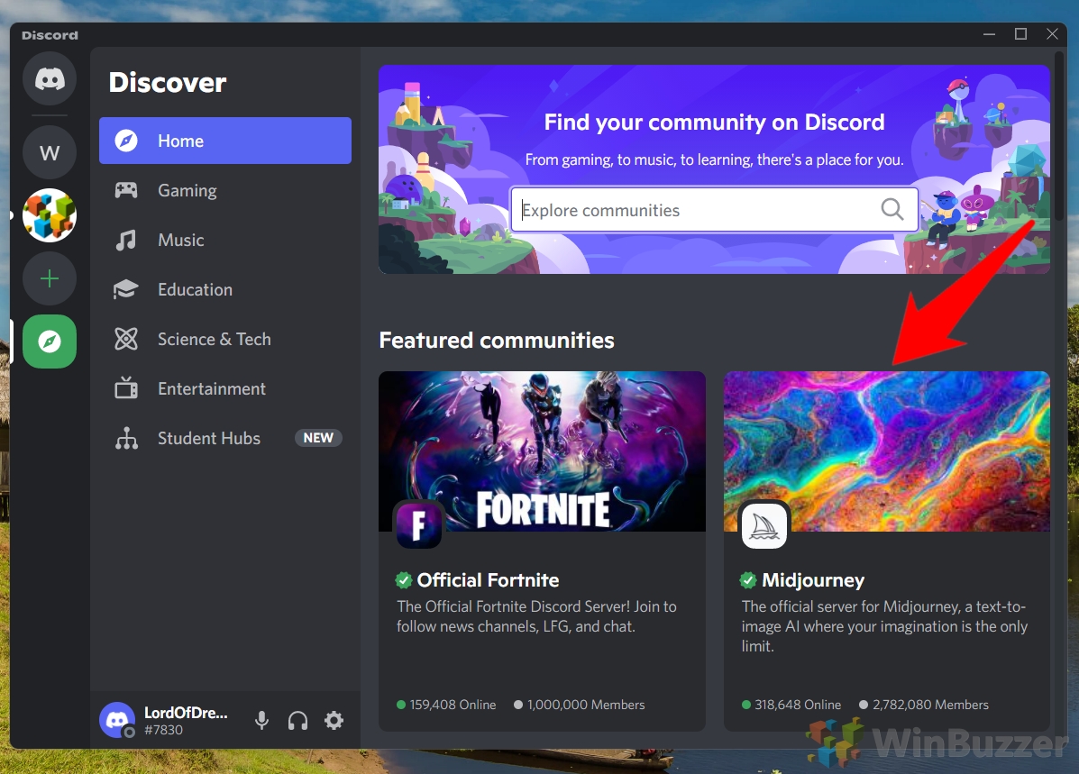 “Comunidades destacadas” destaca los servidores de Discord muy populares, lo cual es un buen punto de partida