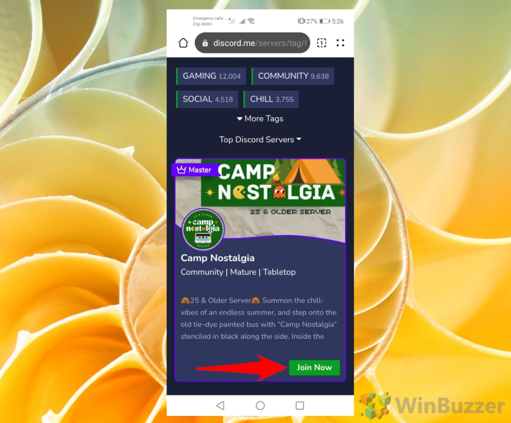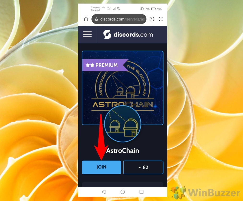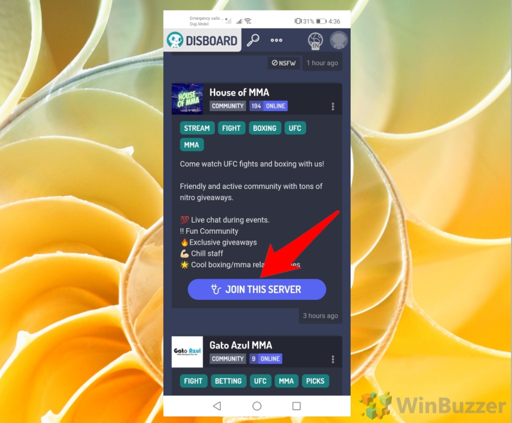 Para convertirse en miembro de un servidor de Discord, haga clic en el botón”Unirse”en la página de detalles de un Discord comunidad