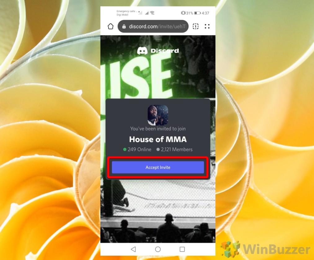 Esto abrirá Discord y mostrará una invitación que puedes tocar para unirte