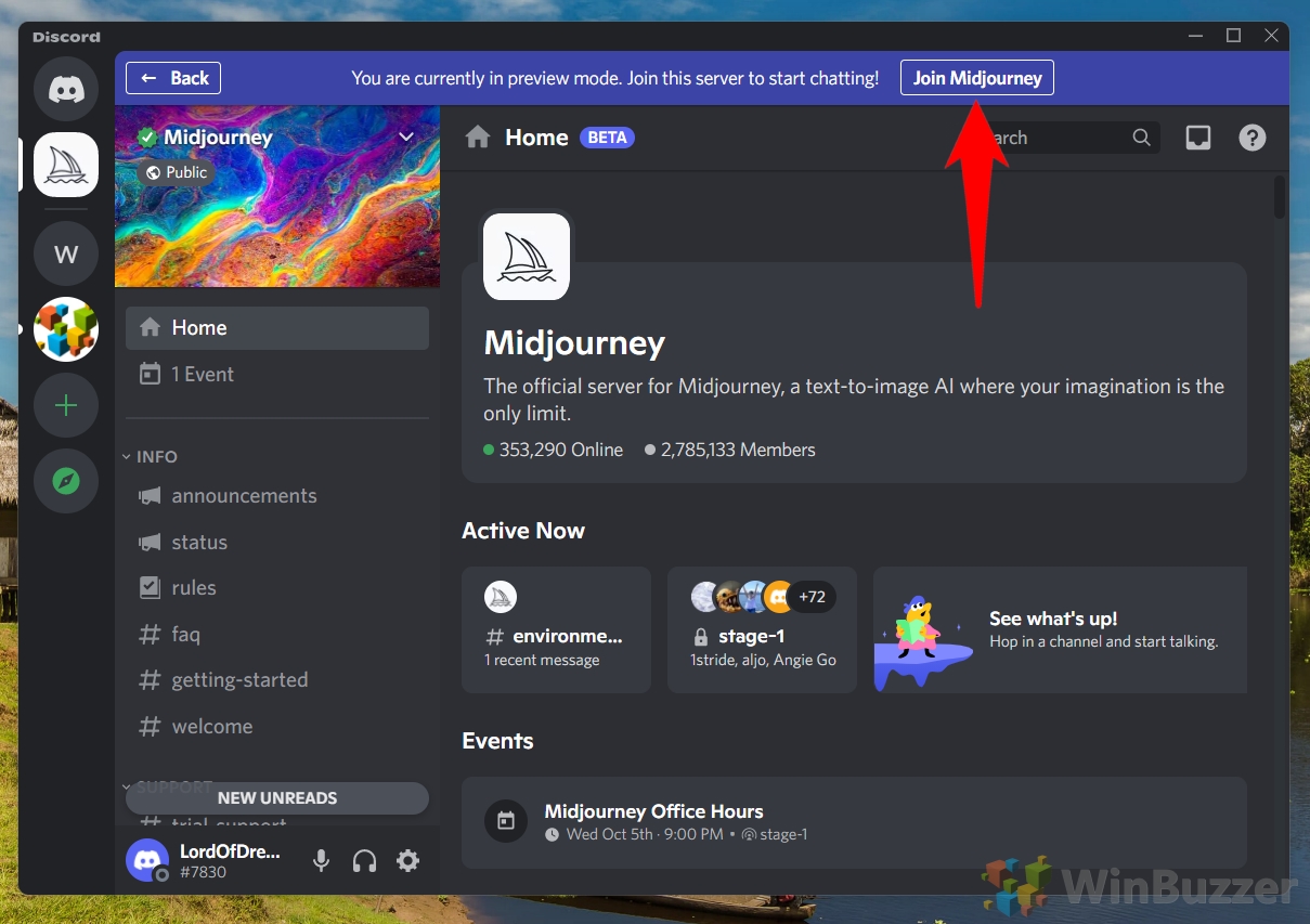 Después de seleccionar un servidor de Discord, puedes unirte desde allí directamente