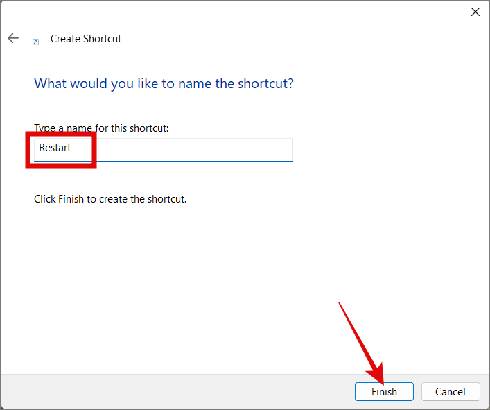 3. Asigne un nombre a su acceso directo y haga clic en Finalizar.