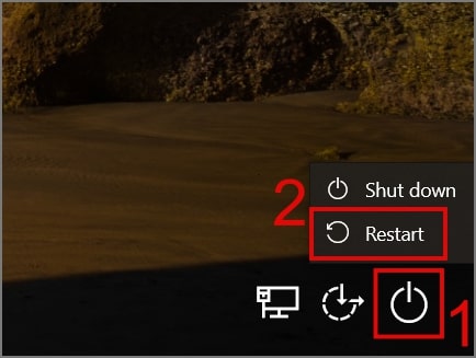 2. Ahora desde su pantalla de inicio de sesión, haga clic en el icono de Encendido en la esquina inferior derecha y seleccione la opción Reiniciar.