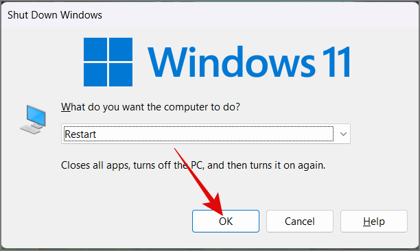 3. Ahora presiona el botón Aceptar o la tecla Intro para reiniciar tu Windows.