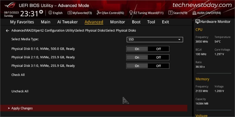 En esta guía, Solo lo guiaré a través de los pasos comunes para configurar RAID a nivel de software usando ASUS BIOS. Los pasos exactos pueden variar según el conjunto de chips de su placa base, pero la idea general será la misma.