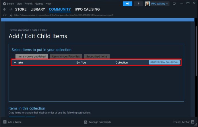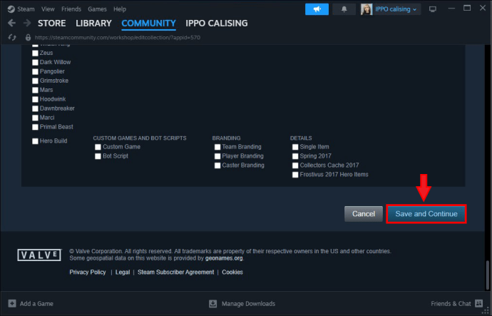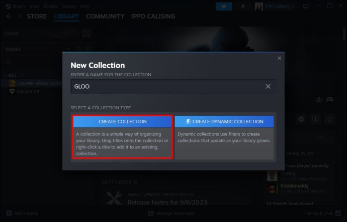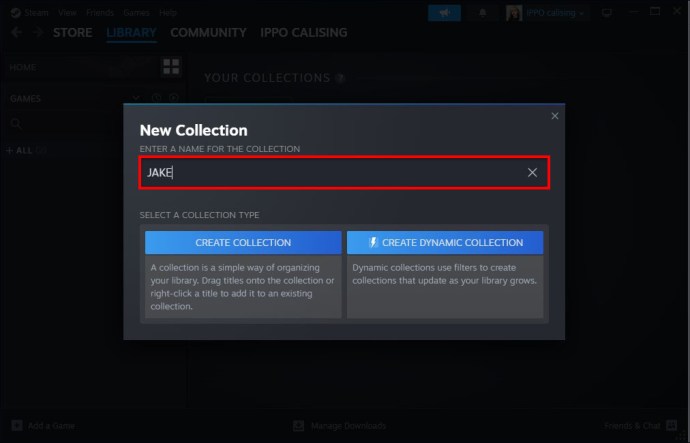 Ingresa un nombre para tu colección en el mensaje de Steam.