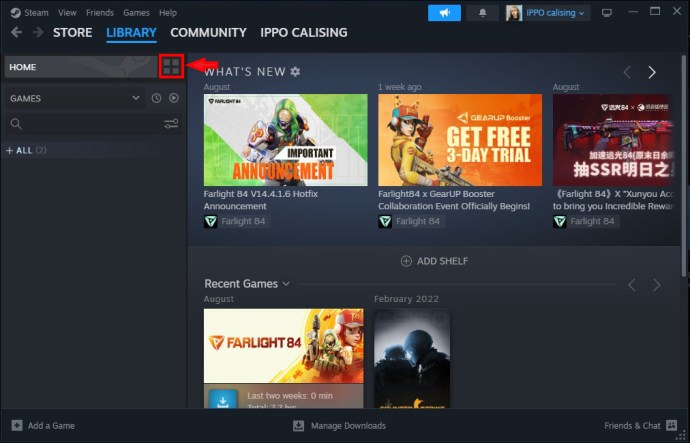 Busca el ícono con cuatro cuadrados en la parte superior izquierda de la página de tu Biblioteca de Steam y coloca el cursor sobre él.Elija”Tus colecciones”en el cuadro que aparece.