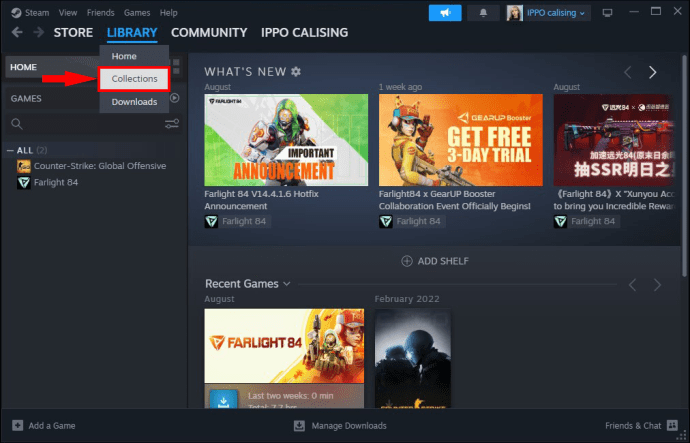 La colección desaparece y tienes un poco más de espacio en la barra de navegación de tu biblioteca de Steam.
