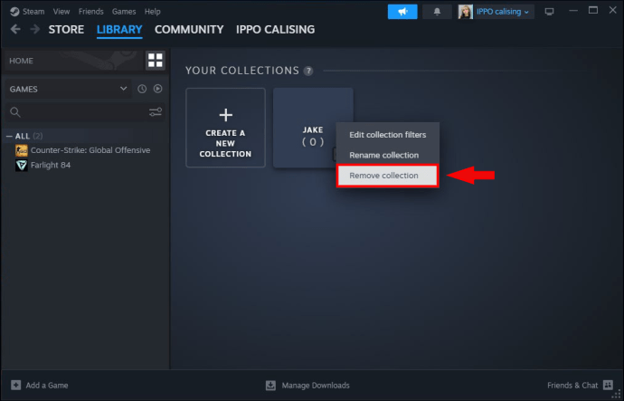 Navega a tu biblioteca de Steam y dirígete a la lista de juegos y colecciones en el lado izquierdo.Desplácese hasta la categoría que desea eliminar y haga clic derecho.