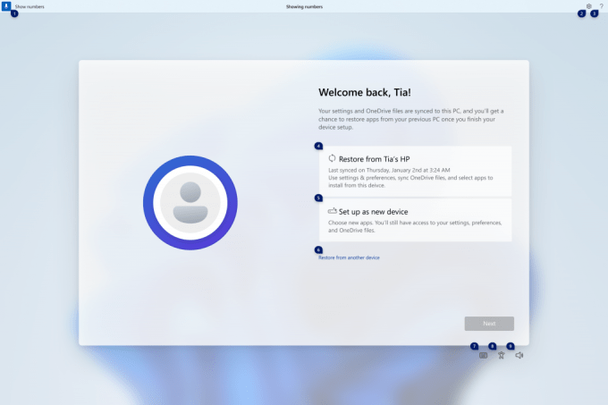 Puedes navegar OOBE, insertar contraseñas usando el teclado en pantalla, escribir texto usando dictado y controlar el mouse y concentrarte usando números y cuadrículas superpuestas una vez que se haya habilitado el acceso por voz.