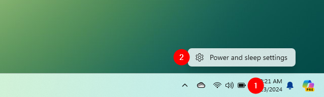 Clic derecho el ícono de la batería en la bandeja del sistema, luego elija Configuración de energía y suspensión