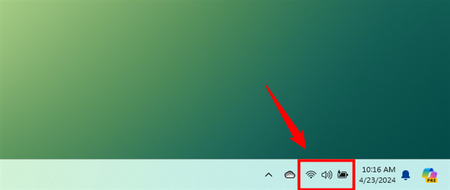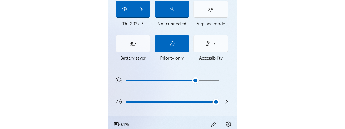 La configuración rápida de Windows 11 también te permite cambiar el brillo de tu portátil fácilmente. Comience haciendo clic o tocando uno de los íconos del sistema (Wi-Fi, Volumen, Batería) en la bandeja del sistema. Alternativamente, también puedes usar el método abreviado de teclado Win + A.