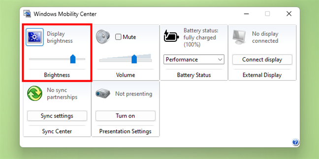 5. Cómo cambiar el brillo en Windows 11 usando el Centro de movilidad de Windows