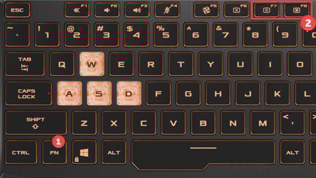 Las teclas de acceso directo de brillo en un ASUS TUF Gaming F15