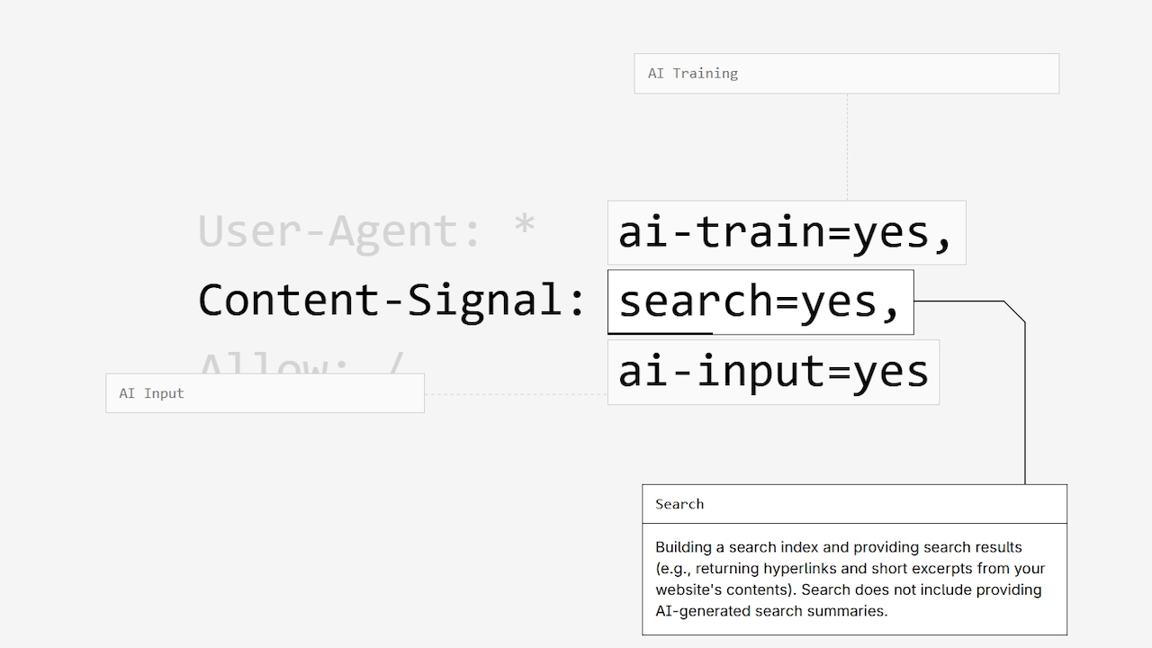 El objetivo es crear un estándar inequívoco sobre cómo los rastreadores pueden usar el contenido después de acceder a él, una distinción que el protocolo original nunca hizo. La política introduce tres señales distintas.