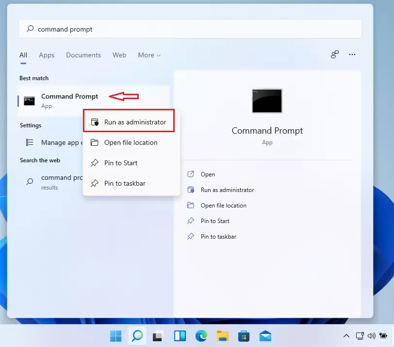 Para ejecutar el símbolo del sistema de Windows como administrador, haga clic en Inicio, busque el símbolo del sistema, haga clic derecho sobre él y seleccione “Ejecutar como administrador.”
