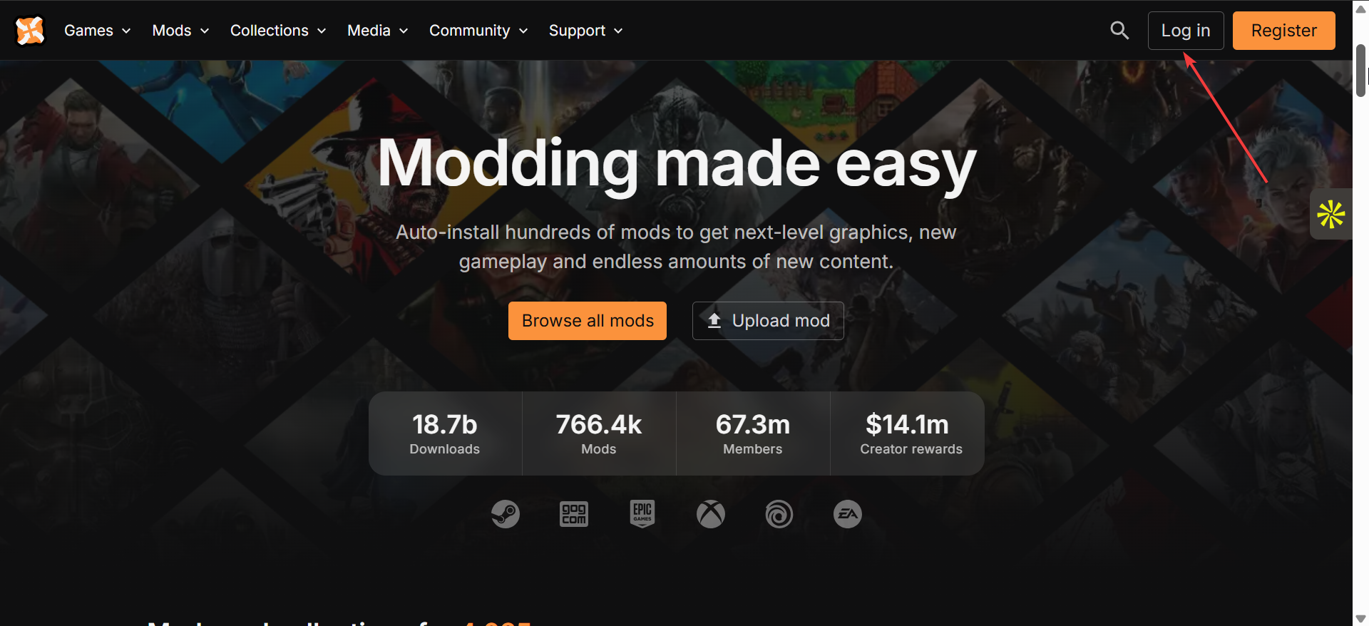 Ve al sitio web oficial de Nexus Mods e inicia sesión en tu cuenta. Una vez que hayas iniciado sesión, usa la barra de búsqueda en la parte superior de la página para buscar”modificaciones de Fallout 4″.
