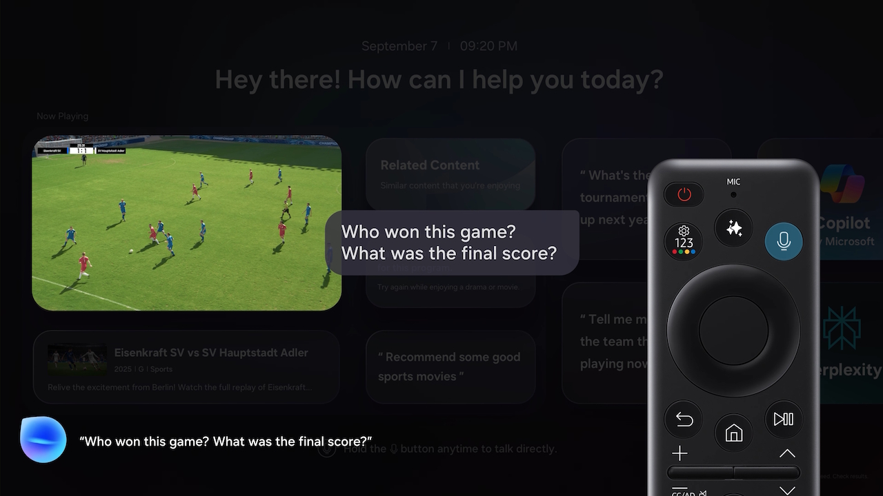 Impulsado por un modelo de inteligencia artificial múltiple que incluye Microsoft Copilot y Perplexity, ofrece respuestas visuales contextuales directamente en la pantalla, con el objetivo de hacer del televisor un dispositivo más central y útil para toda la familia.