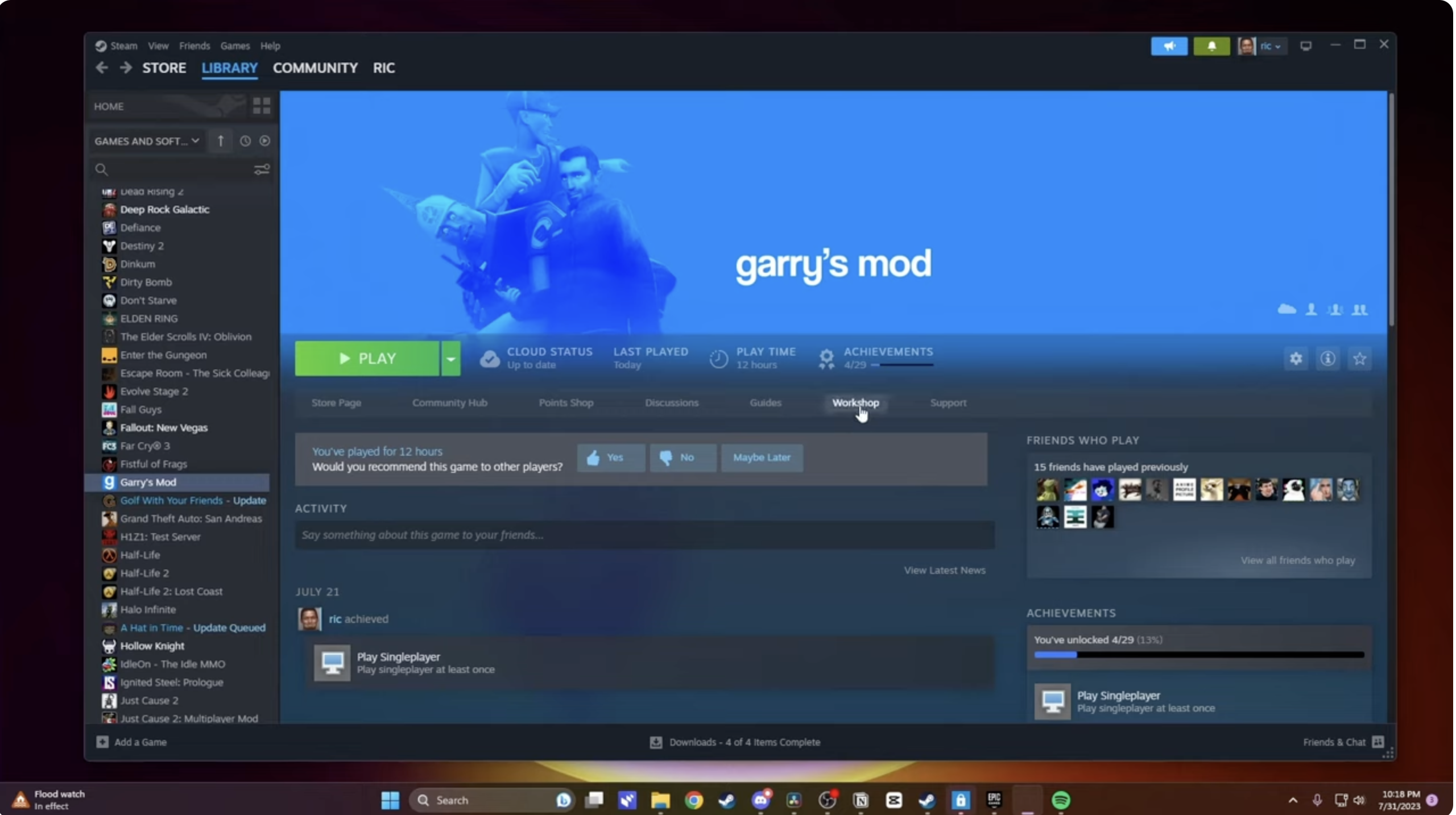 Después de suscribirte, Steam descarga los archivos en segundo plano. Cuando vuelves a iniciar Garry’s Mod, el juego carga automáticamente los nuevos complementos de tu taller.