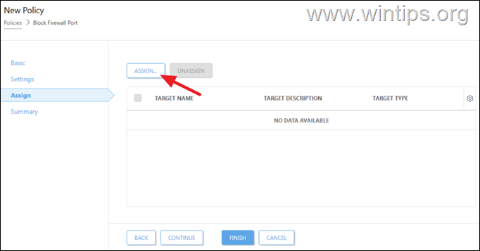 6a. Ahora haga clic en ASSIGN para asignar la política a clientes/estaciones de trabajo.