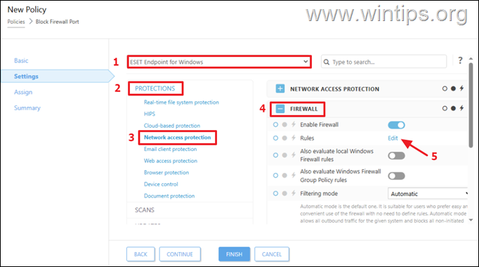Para crear un nuevo ESET PROTECT que cierre/bloquee un puerto específico en todos los clientes de seguridad de ESET Endpoint administrados: