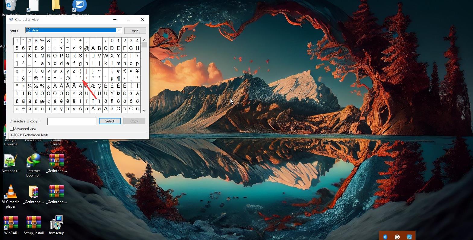 El mapa de caracteres le permite insertar cualquier símbolo independientemente de la distribución del teclado. Simplemente presione la tecla de Windows y escriba Mapa de caracteres. A continuación, seleccione Vista avanzada y busque título. Por último, haz clic en Copiar y pégalo en tu documento.