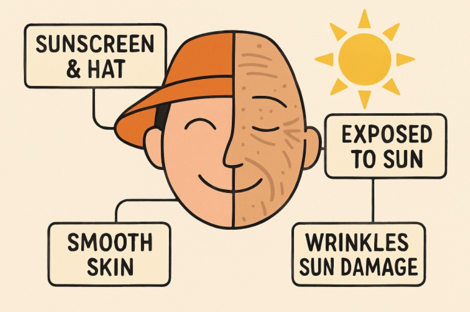 La radiación UV es el principal factor externo que contribuye a la aparición de arrugas prematuras. href=”https://www.healthline.com/health/beauty-skin-care/retinids-for-arrugas”>envejecimiento de la piel, incluida la formación de líneas finas, arrugas y tono desigual de la piel. Una protección solar rigurosa reduce significativamente el riesgo.
