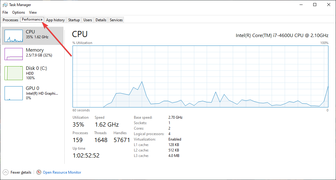 3) Utilice Resource Monitor para obtener información más detallada sobre la CPU
