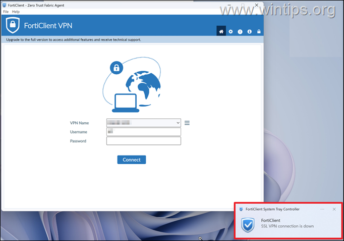3. Ahora pida al usuario que se vuelva a conectar a FortiClient VPN. *