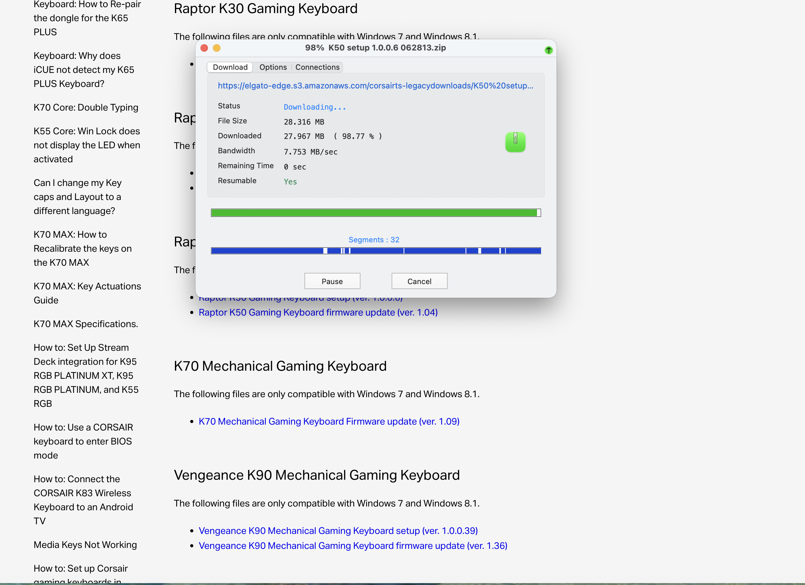 Visite el sitio web oficial de Corsair y navegue hasta la sección”Descargas”. Desplácese hacia abajo hasta la sección Seleccionar categoría y elija su teclado.